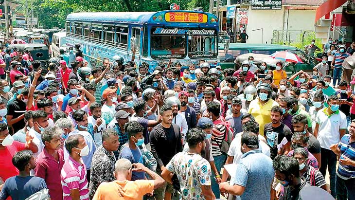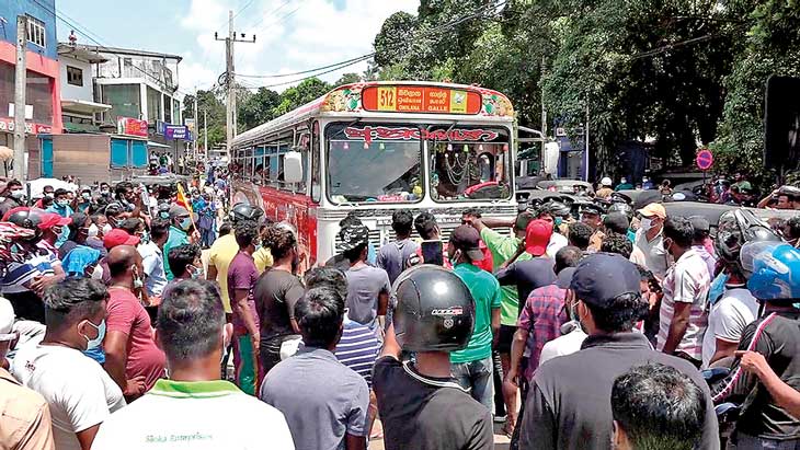 මහජනතාව පීඩාවට පත් කරවමින් මහ පාරවල්වලට කොට දමා අවහිර කර මහජනතාවට යන එනමං නැති කිරීම සම්බන්ධයෙන් මහජනතාව ප්රචණ්ඩකාරීව හැසිරී උද්ඝෝෂණය කළ පිරිස් වෙත විරෝධය පළ කළහ.